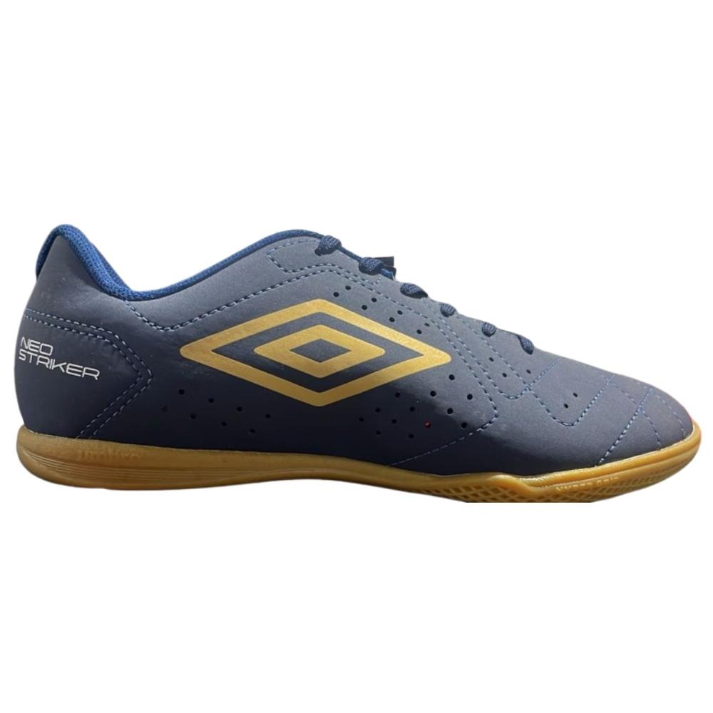 Chuteira Umbro Futsal Neo Striker Marinho Branco Dourado